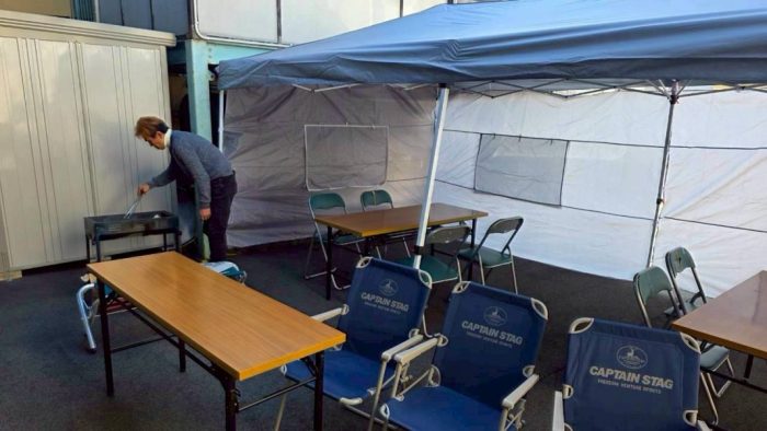 夜になると冷え込む事を想定して今年はテントを設営しました。